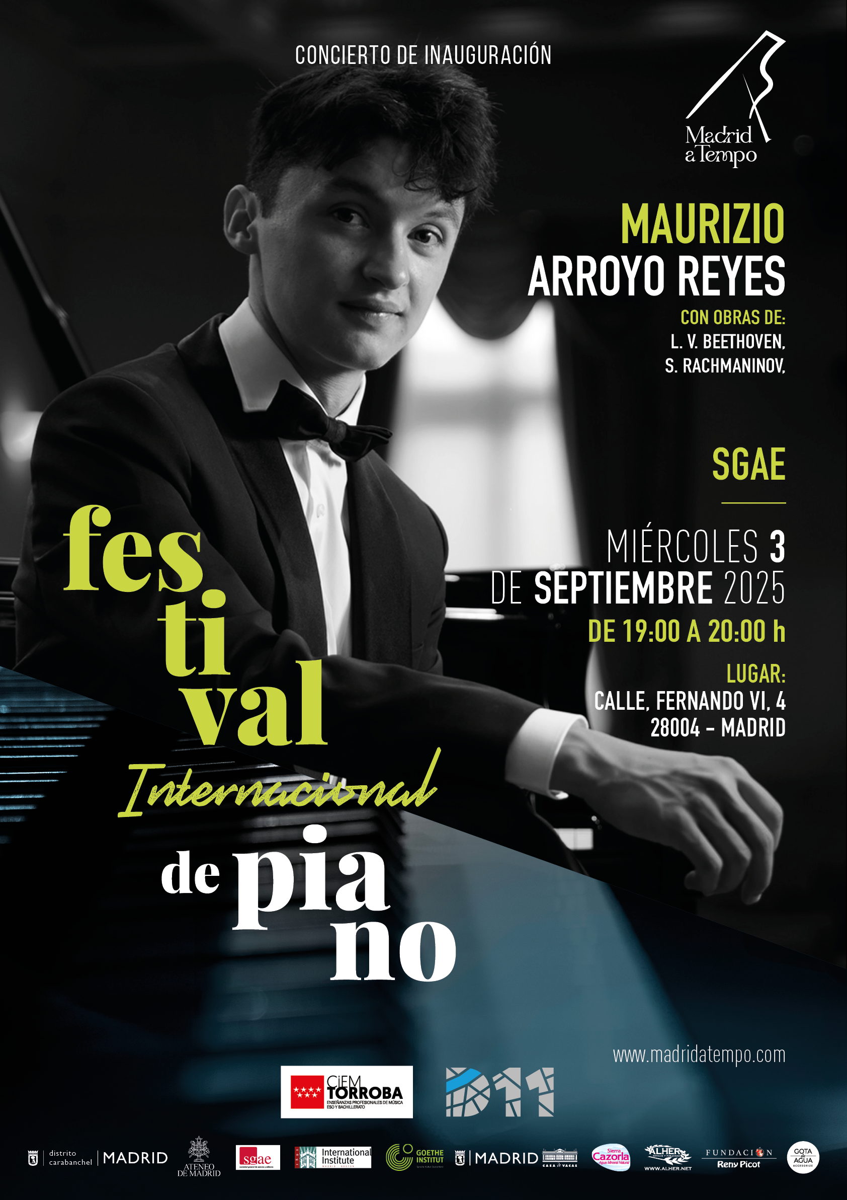 By administrador / 28 agosto, 2025 / Sin categoría / No hay comentarios en 3rd of September, 2025 at Palacio Longoria, SGAE, Madrid, Spain L. V. Beethoven: Sonata Op. 2, No. 3 in C major S. Rachmaninoff: Variations on a Theme by Chopin, Op. 22